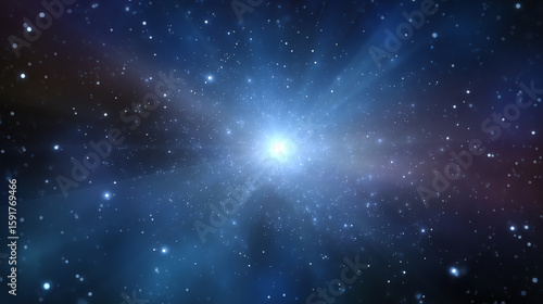 A stunning depiction of a bright star surrounded by cosmic dust and distant galaxies, showcasing the vastness of the universe.
