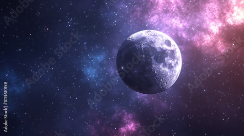 A stunning depiction of a moon in a vibrant cosmic space scene.