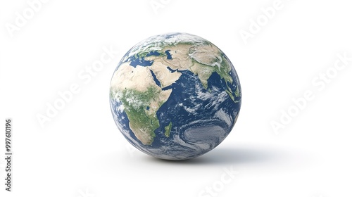 A stunning depiction of Planet Earth against a clean white background, showcasing the vibrant colors of the continents and oceans.