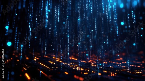 A stunning digital rain effect featuring glowing blue and orange lights, perfect for high-tech or futuristic themes.