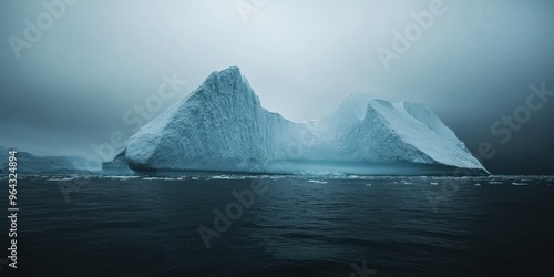A stunning ice formation emerges from the misty waters, capturing the serene beauty of nature in a tranquil landscape.