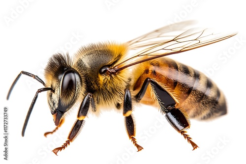A Stunning Macro Close-Up of a Honey Bee Isolated Against a Minimalist Background