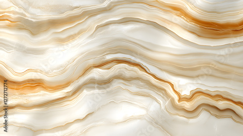 A stunning marble texture features soft waves in cream and beige with intricate caramel veins