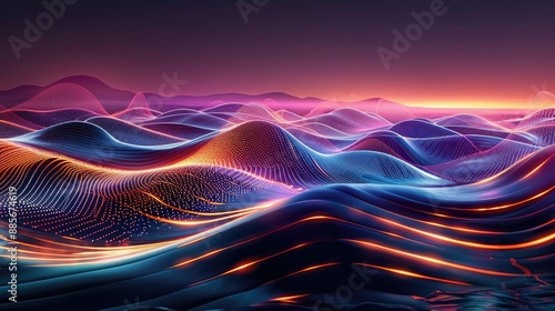 A stunning neon wave artwork with radiant, intertwining lines that evoke the motion of ocean waves in a futuristic setting.