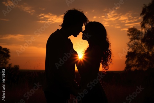 A stunning outline of an embracing couple