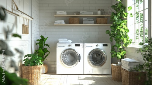 A Stunning Photo of a Clean Modern Laundry Room Perfect for Interior Design Inspiration and Home Improvement Projects