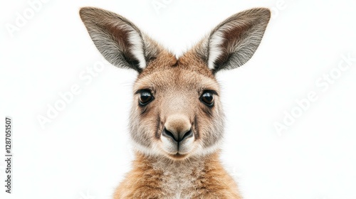 A stunning photo of a kangaroo isolated on a clean white background, showcasing its unique features and graceful stance.