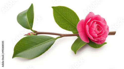 A stunning realism of a pink camellia flower, delicately illustrated against a white background. Perfect for floral lovers.