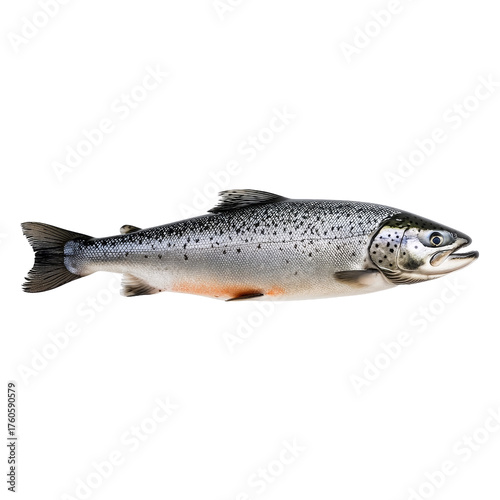 A stunning salmon in profile, showcasing detailed scales and fins, isolated on transparent background. Seafood, Aquatic, Wildlife