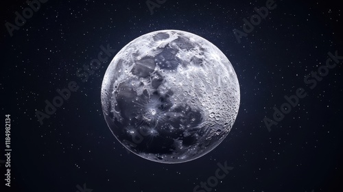 A stunning view of a full moon surrounded by twinkling stars in a night sky.