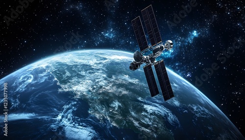 A stunning view of a satellite orbiting Earth, showcasing a blend of technology and the beauty of our planet. This image captures the essence of space exploration and innovation.