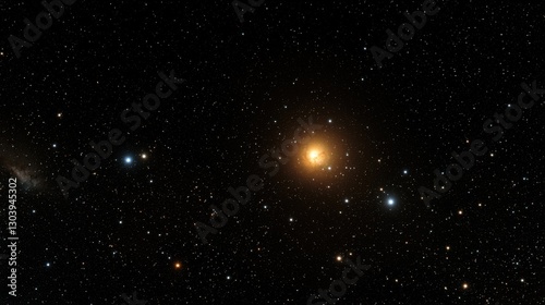 A stunning view of a starry night sky, featuring numerous distant stars and a bright orange celestial body, set against a backdrop of deep black space.
