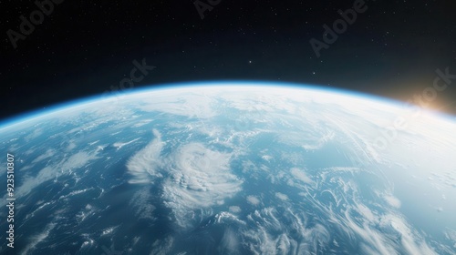 A stunning view of Earth from space, showcasing clouds, oceans, and atmosphere in vibrant colors against the backdrop of stars.