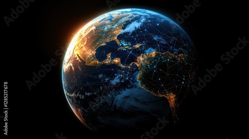 A stunning view of Earth from space showcasing interconnected networks and glowing cities