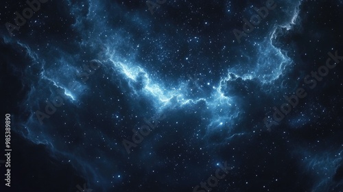A stunning view of tiny stars twinkling across the night sky, with a dynamic, realistic background of soft clouds and deep cosmic blue