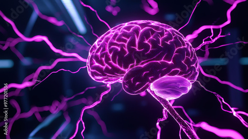 A stunning visual representation of a brain emitting vibrant pink energy, showcasing the power of thought and creativity.