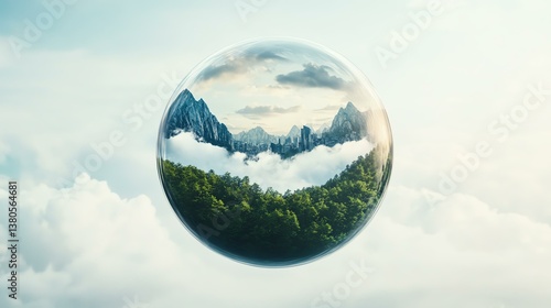 A stunning visual representation of a globe featuring mountains and lush greenery, symbolizing nature's beauty and our planet's fragile ecosystem.