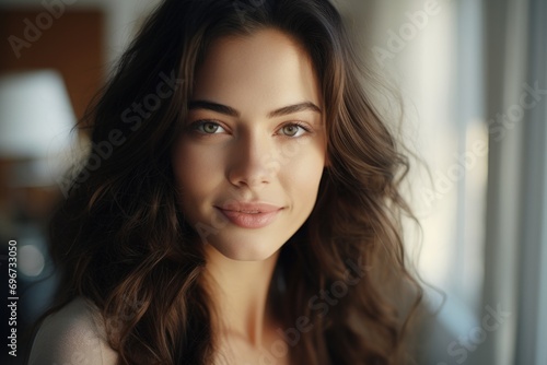 A stunning young woman with flowing brown hair. Perfect for beauty and fashion campaigns