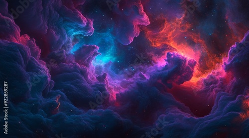A stunningly beautiful cosmic nebula showcasing vibrant gas clouds in captivating shades of blue and purple hues
