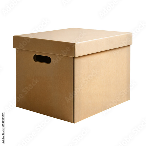 A sturdy cardboard storage box with a lid, perfect for organizing items at home or in the office.
