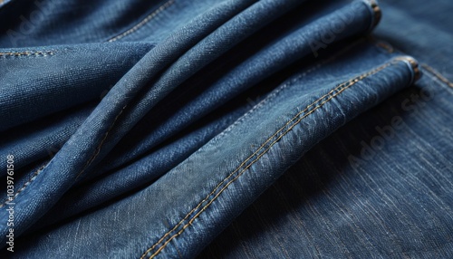 A sturdy denim material displayed prominently, emphasizing its durability and classic blue hue, ideal for jeans and jackets, Generative AI