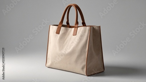 A stylish cream tote bag with tan leather handles, perfect for everyday use and outings.