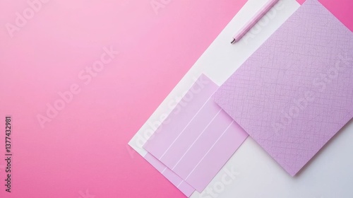 A stylish pink and white notebook with a pen placed on top ready for writing and organizing tasks