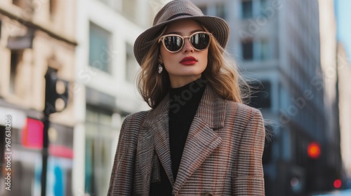 A stylish woman in a fashionable outfit, walking confidently down a city street, embodying modern fashion and grace.