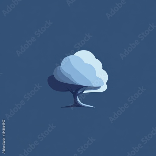 A stylized blue tree stands against a deep blue background.