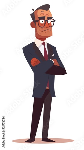 A stylized cartoon character in a suit, standing with arms crossed, exuding confidence.