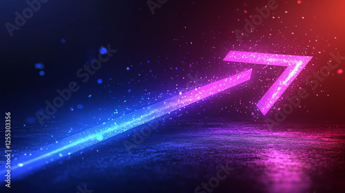 A stylized curved arrow with a futuristic neon glow, vibrant blue and purple tones, sleek and energetic design, digital and high-tech aesthetic, floating on a dark background