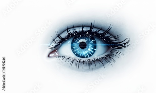 A stylized digital eye composed of microchips and glowing data streams, symbolizing AI vision technology. The white background provides contrast, emphasizing the intricate details of the design.