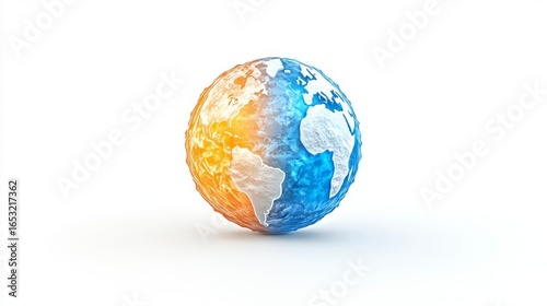 A stylized globe showcasing contrasting colors of blue and orange, symbolizing Earth's climate and environmental changes.