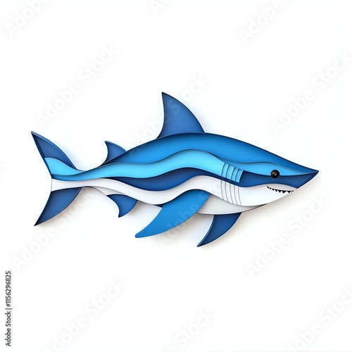 A stylized illustration of a blue shark, featuring smooth curves and a vibrant color palette, representing marine life in a playful design.