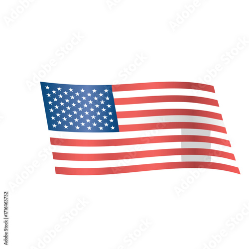 A stylized illustration of the American flag waving against a white background.