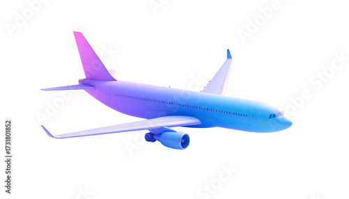 A stylized jetliner rendered in vibrant gradients, isolated against a black void