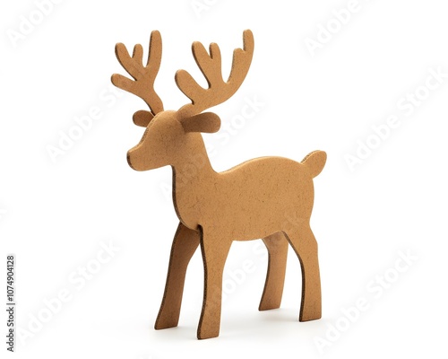 A stylized representation of a reindeer made from a cardboard-like material, standing gracefully with prominent antlers. Ideal for holiday decorations and creative projects.