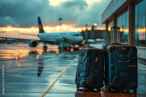 A Suitcase with Luggage Highlights the Challenges and Hassles of Airport Travel - The Image Features a Plane on the Runway, Emphasizing the Realities of the Airport Experience