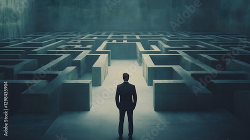 A suited person is facing a giant complicated maze
