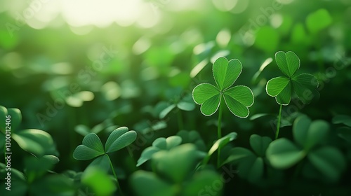 A sunlit, close-up scene of a field of clover with a bright, hazy background, creating a warm and natural atmosphere.