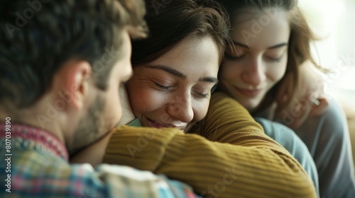 A Support Group Of Patients Hugs Each Other During A Therapy Session, Background HD For Designer