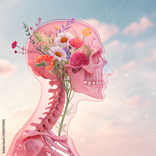 A surreal and artistic side profile of a translucent human head with glowing abstract shapes inside, creating a futuristic and imaginative look.