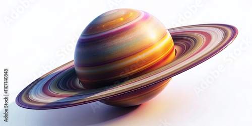A surreal cosmic Saturn floats in a pristine white void, showcasing vibrant colors and dreamlike celestial imagery, embodying an otherworldly vision of abstract astronomy.