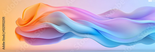 A surreal digital illustration of holographic flowing fabric gracefully suspended mid-air, gently