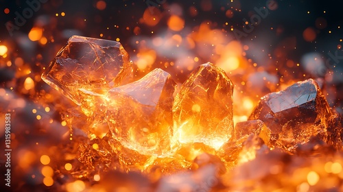 A surreal display of glowing broken glass shards forming a mesmerizing dynamic background