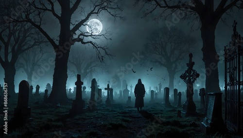 A surreal dream sequence where the protagonist wanders through a misty graveyard at midnight, encountering spectral figures ai_generated