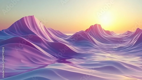 A surreal landscape showcasing soft, flowing waves in shades of pink and lavender under a serene sunrise. An abstract digital art piece inviting calmness.