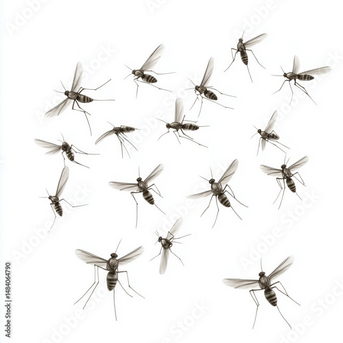 A swarm of flies is flying in a circle. The flies are black and white. The image has a mood of chaos and disorder