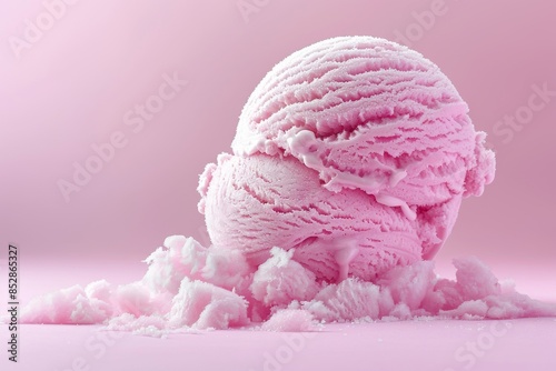 A swirl of cotton candy ice cream stands out against a playful pink background