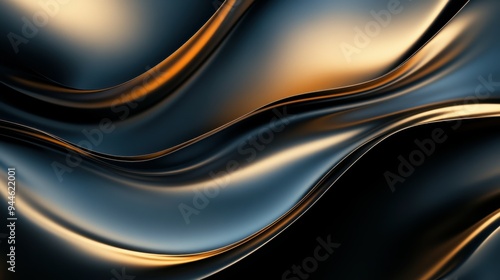 A swirl of dark gold and black curves with a touch of light gold in a smooth, abstract design displaying ultrafine details and circular patterns.